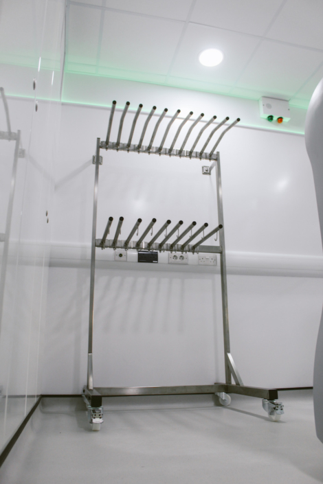 A bespoke air handling unit was designed to provide the air pressures and air change rates required to meet clinical requirements. The specialist design incorporated the latest remote monitoring system to protect the unit when unoccupied. The air handling unit is designed to meet the UK climatic conditions it will face and is designed to be compact while still compliant to fit in the available space on the Cath Lab design.